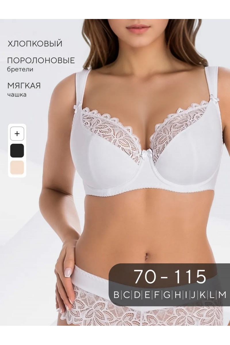 Бюстгальтер " Эко Эксклюзив" красиво моделирует и округляет грудь.Мягкая Т-чашка на каркасах идеально подходит для пышных форм.Бретели из 2 х частей. Передняя часть из основного полотна на подкладке из ламинированного полотна (поролона).Нижние детали чашек из неэластичного дублированного хлопкового полотна.