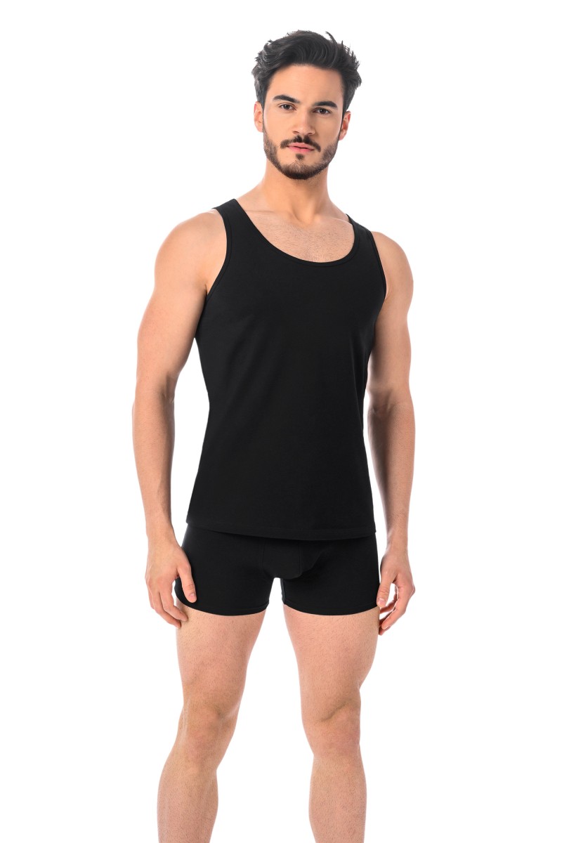 Майка мужская прямого силуэта без рукавов на узких бретелях.