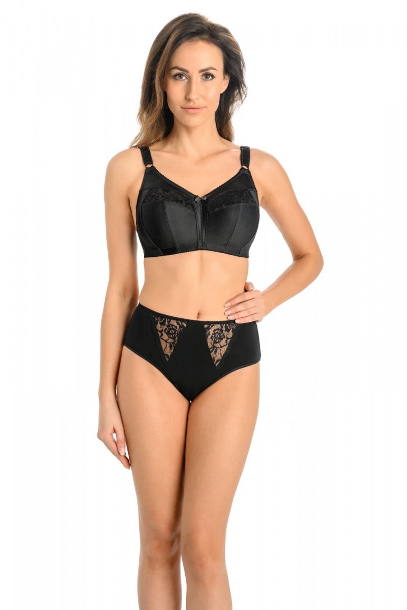 По центру переда изящная фигурная вставка, декорированная деталями из эластичного кружев.