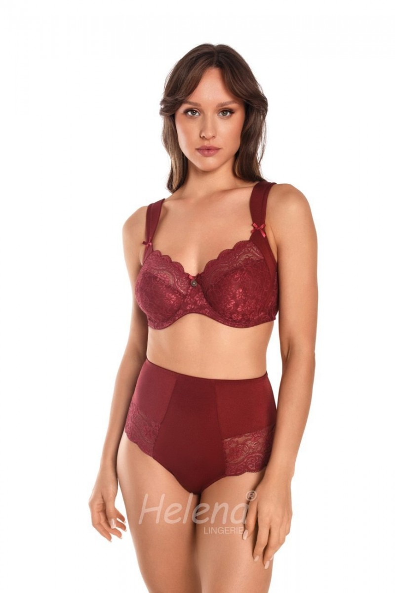 Бюстгальтер 1287 с мягкими чашками, на стане, на каркасах. Чашки бюстгальтера из кружева , имеют тройное горизонтальное членение. Детали нижней чашки продублированы сетчатым полотном с хлопком. Центральная и боковая деталь стана выполнена из комбинации основного функционального полотна и кружева. Бретель регулируемая, усилена мягким поролоном. Декор — металлическая подвеска.
