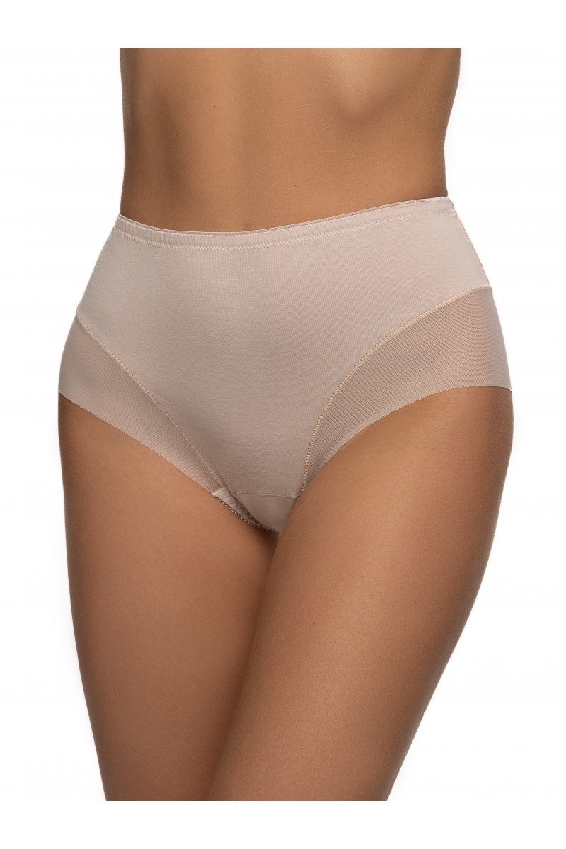 Трусы женские слипы с высокой линией талии, выполнены из микрофибры. Нижние детали выполнены из эластичного сетчатого полотна. Ластовица - из 100% х/б.