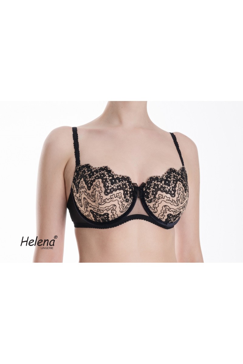 Бюстгальтер № 1262 с мягкими чашками на каркасах. Бюстгальтер выполнен из эластичной вышивки и эластичного трикотажного полотна. Отделка-бантик.